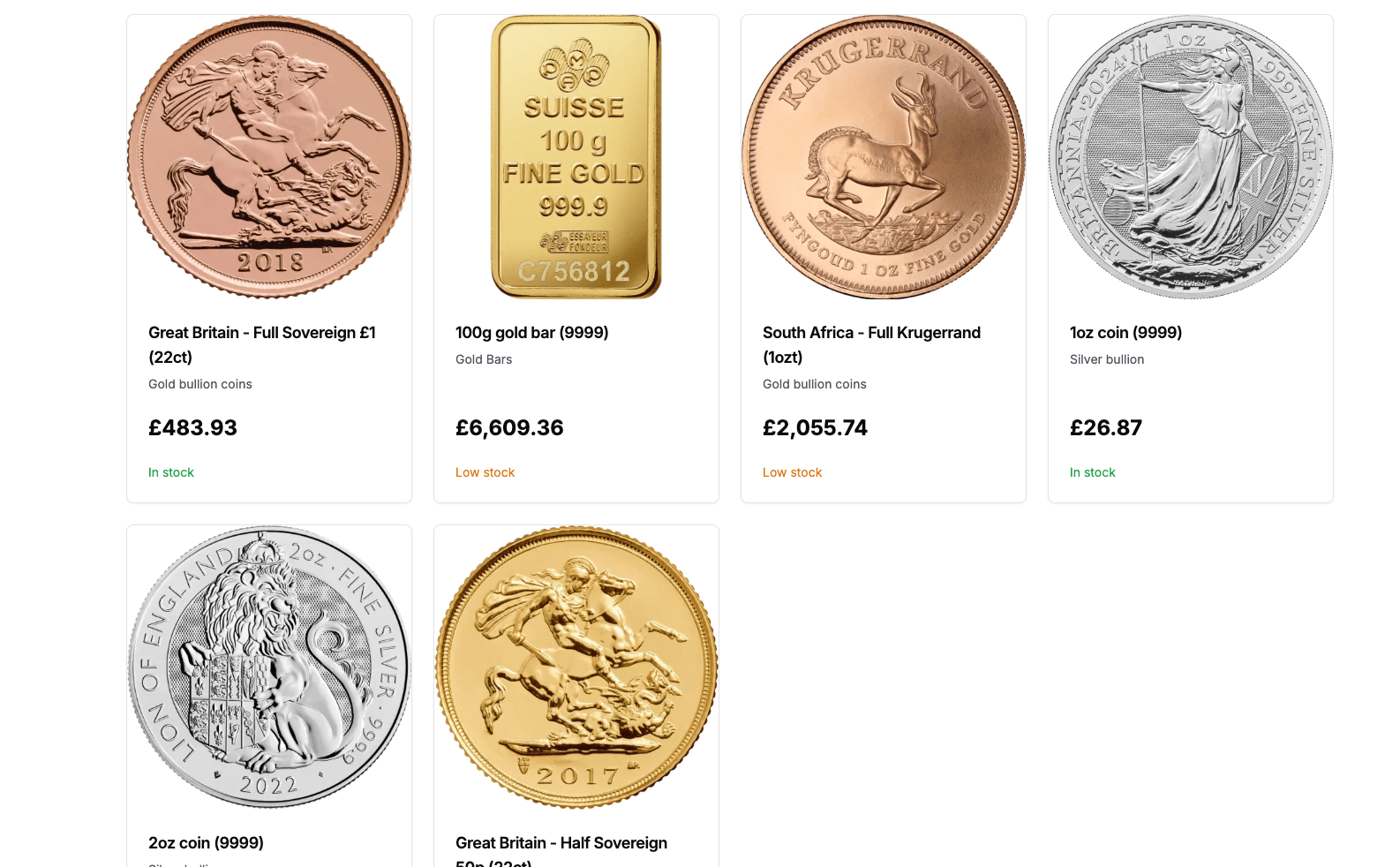 Our new bullion page might look simple, but it's a big step for us. While we don't have a shopping basket or checkout feature yet, the prices you see are live and updated in real-time. We're still working out the mechanics of how best to present dynamic pricing on the website and within the shopping basket – but for now, we're keeping it straightforward.
